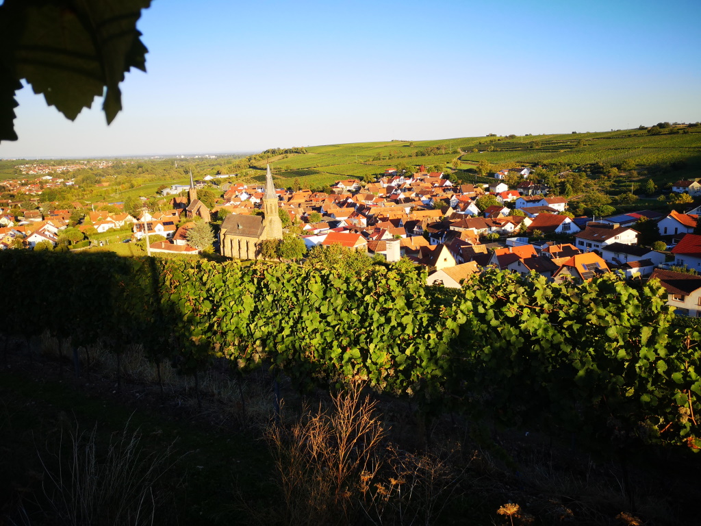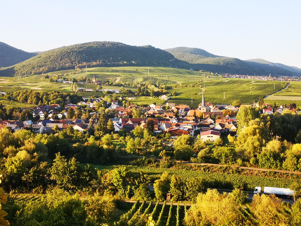 So zieht sich das Rebenmeer der Südpfalz von Bockenheim bis zur 85 Kilometer entfernten französischen Grenze bei Schweigen. Auf der einen Seite mit Blick in die Rheinebene, auf der anderen Seite begleitet vom Haardtrand und dem Pfälzerwald. Genau hier, zwischen den beiden Erhebungen Orensfels (581 üNN, Haardtgebirge) und dem gegenüberliegenden Hohenberg (551 üNN, Wasgau) liegen die Weinorte Siebeldingen und Birkweiler - meine Heimat. Beide Orte sind mir mit ihren Menschen und ihren Weinen ans Herz gewachsen.